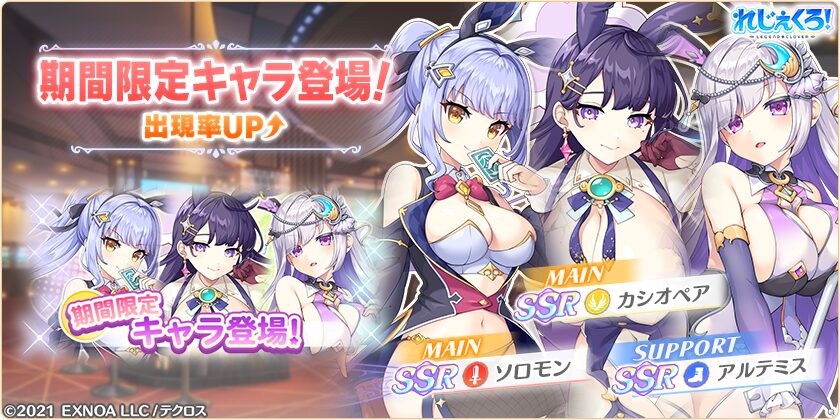 そしてそんなカシオペアママと一緒に実装されたのが、バニー姿のソロモン、アルテミス、弁慶の3人です。