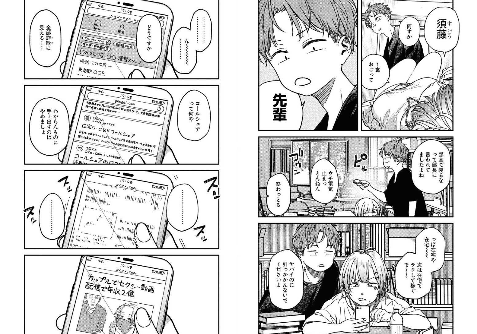 ある日、丹川先輩がスマホでダラダラと楽に金を稼ぐ方法を探していた時、ふと画面に写ったのが「カップルのセクシー配信で年収2億」という紹介記事でした。