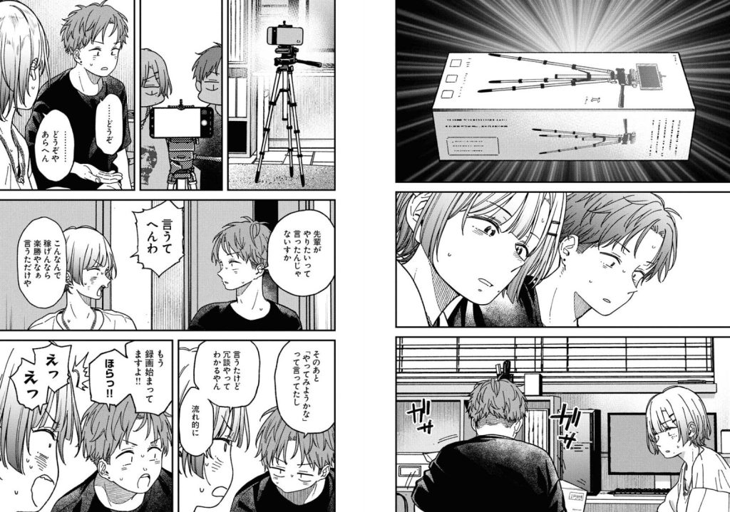 丹川先輩が冗談で呟いた「やってみようかなぁ」を彼が真に受けて速攻で撮影用の三脚を購入したことから、2人のちょっぴり……いやだいぶエッチなエロエロ配信者生活がスタートするのでした♡